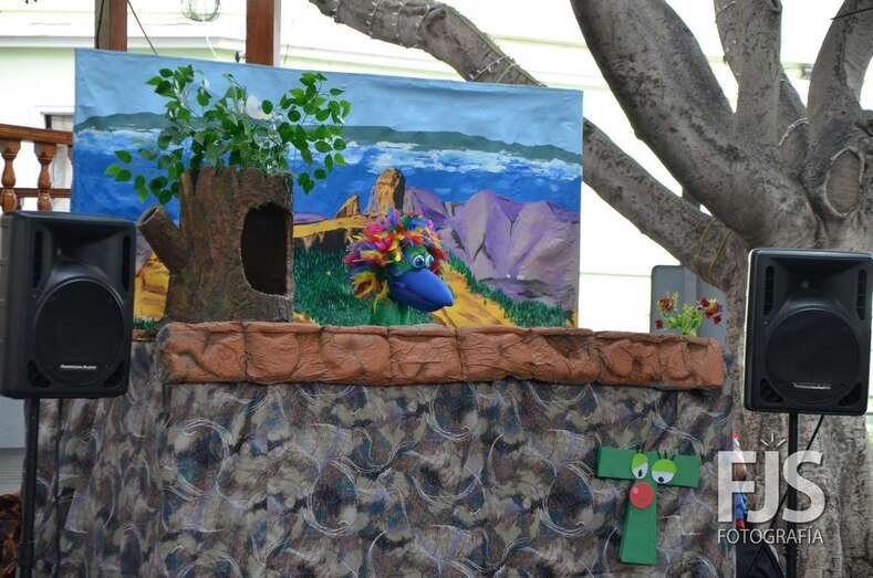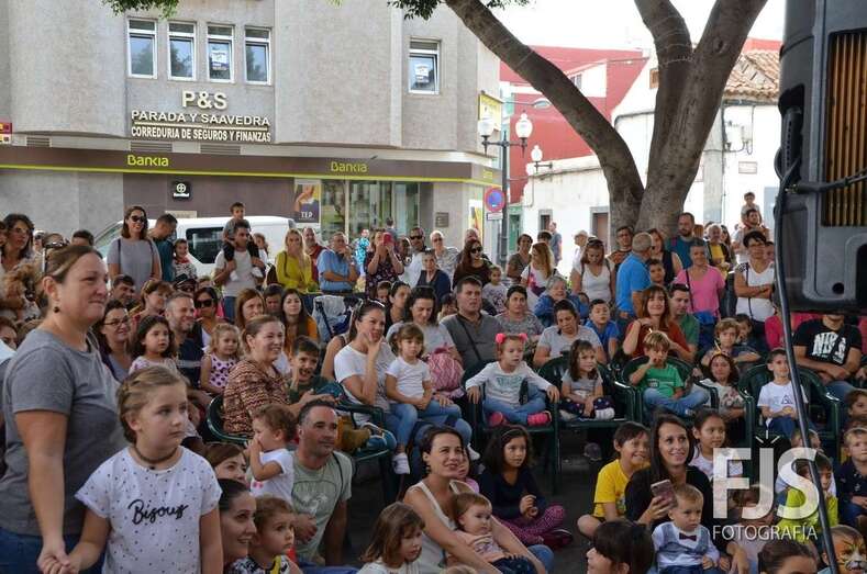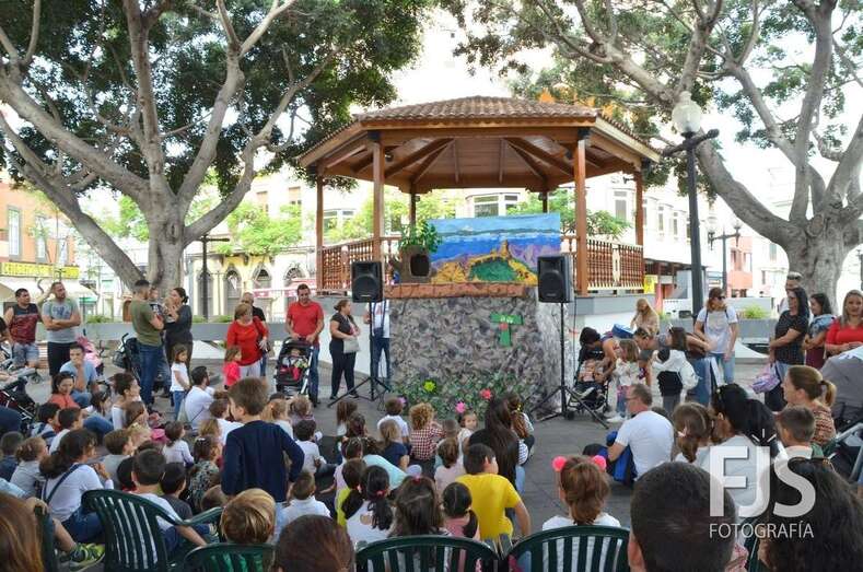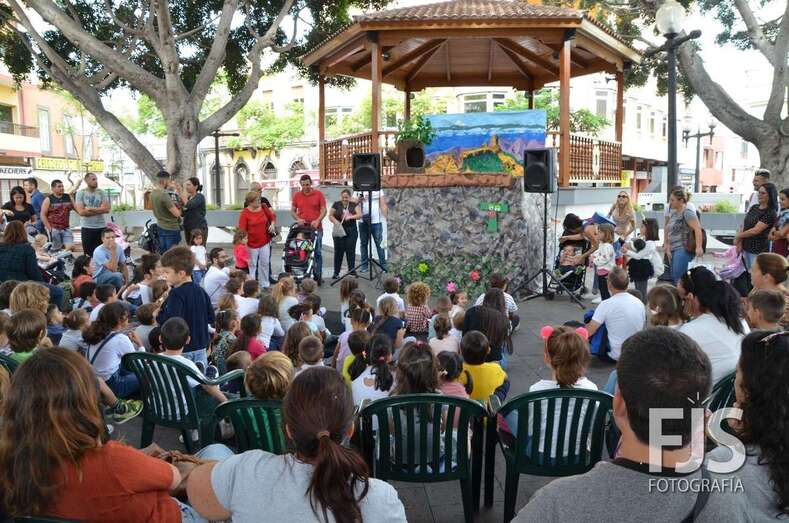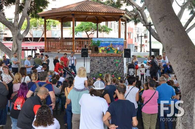 Titriclown representó este mediodía en la plaza de Los Llanos la obra La Gotita Salvadora, un teatro infantil de títeres que promueve un mensaje de respeto al medioambiental y que estuvo organizado por Cultura dentro de los actos de Telde Cambia la Hora.