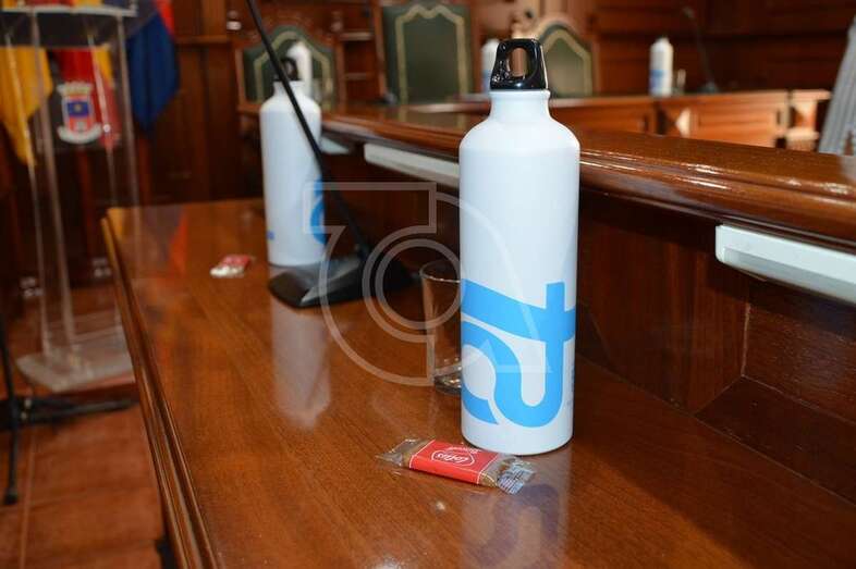 El de este lunes ha sido el primer Pleno de Telde sin botellas de agua de plástico. Los 27 ediles han estrenado recipientes de aluminio cedidos por la empresa mixta Aguas de Telde como parte de un acuerdo para promover el desarrollo sostenible y el reciclaje y reducir la contaminación.