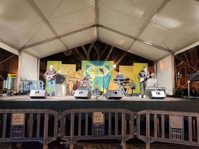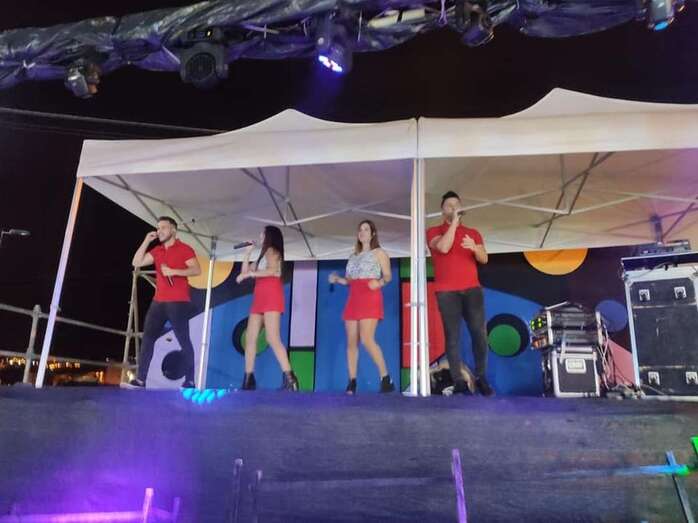 El entorno de la plaza de Los Llanos acogió este viernes una nueva edición de la Noche de Vinos y Tapas y conciertos de la Banda Municipal y del grupo Km 0. En la Rambla de Pedro Lezcano Montalvo el grupo Arena y Rafa Alemán amenizó una verbena.
