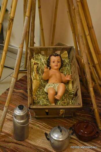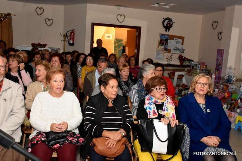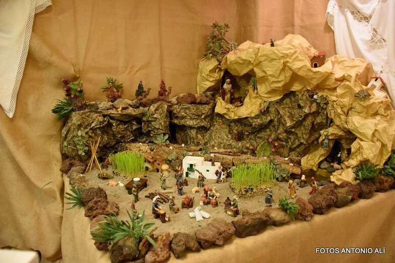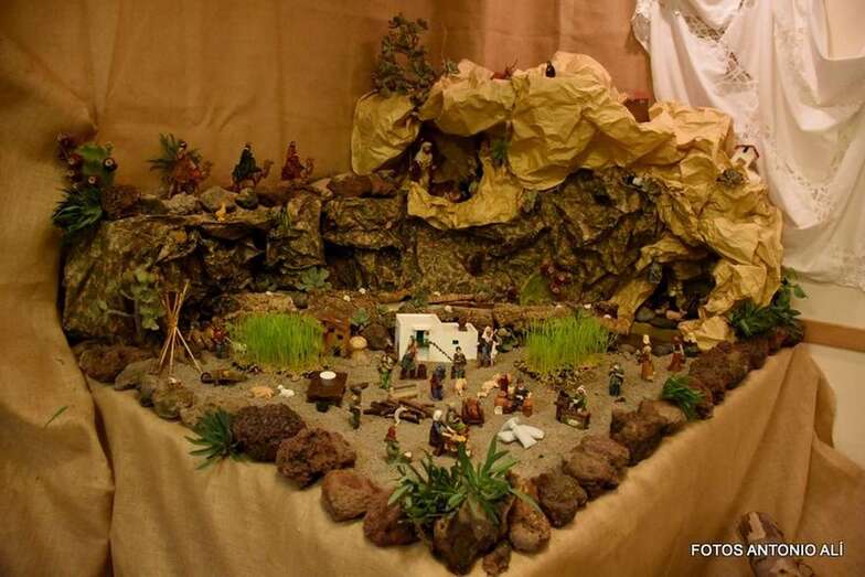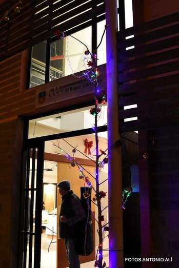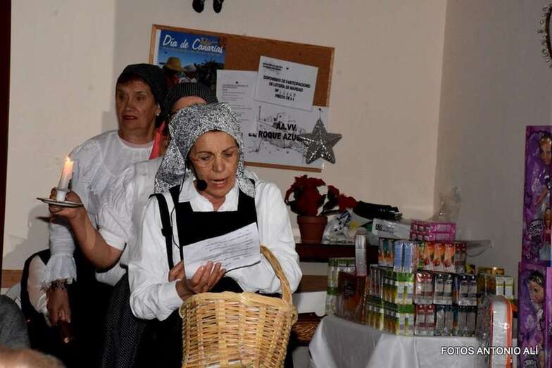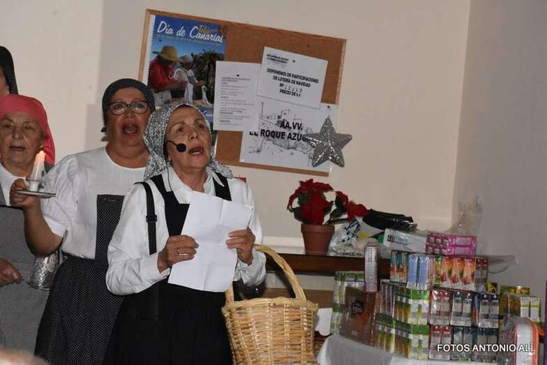 El colectivo El Roque Azucarero brindó esta noche por la Navidad con una gran fiesta en la que se inauguró el belén y el alumbrado, obra de Juan González López, y en la que no faltaron los villancicos y la degustación de productos propios de la época, además de una paella.
