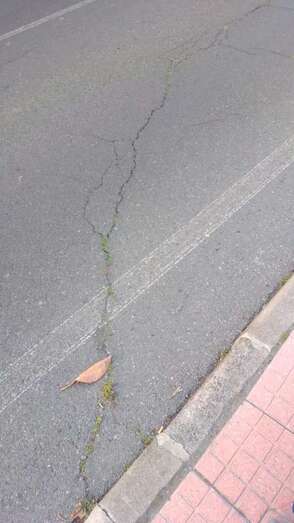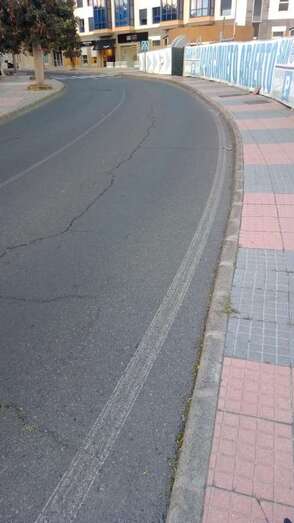 Una acera con losetas dañadas o directamente levantadas, arquetas con desperfectos y una grieta que atraviesa el asfalto y que, para temor de los vecinos, va cada vez a más. Este es el panorama que presenta la calle Profesor Lucas Arencibia Gil, junto al parque de San Juan.