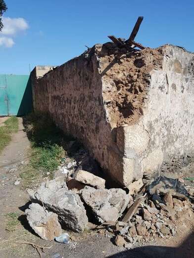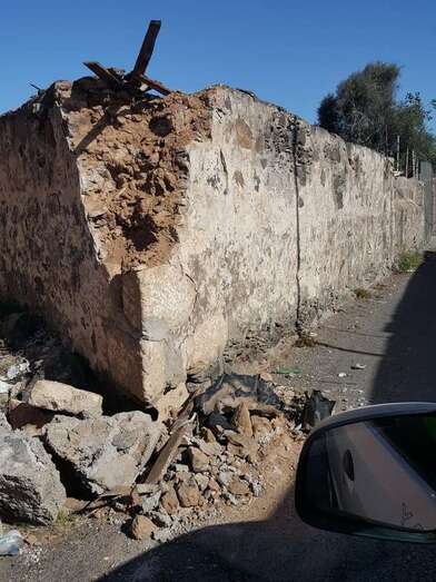 En el camino El Hornillo el peligro acecha en las esquinas debido al estado de descomposición de las viejas tapias de protección de las antiguas fincas. Días atrás se desmoronó una de ellas compuesta por sillares de piedras.