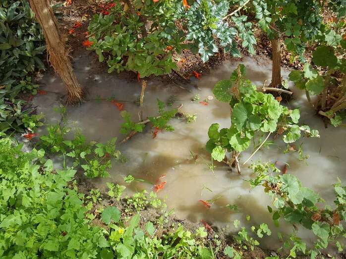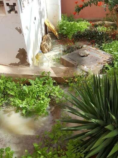 Imagen del vertido (Foto TA) Los vecinos de la calle Miguel Hernández de Las Remudas advierten que un vertido de aguas junto al bloque 4 está generando un problema de sanidad pública, con infecciones y picaduras de mosquitos.