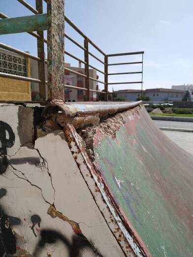 Usuarios de las pistas del deporte de skateboarding han denunciado el peligroso estado de la instalación que está en La Garita, junto a la cancha, y la suciedad que impera en la recientemente remodelada de Melenara.