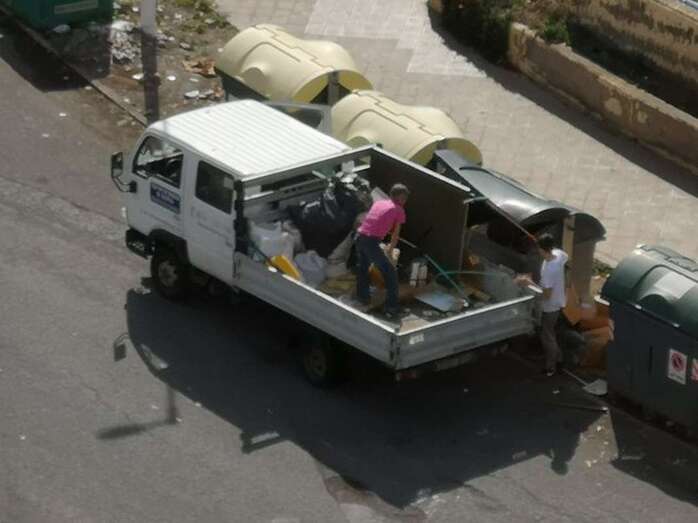 Dos operarios, dejando basura en unos contenedores de Eucaliptos I (Foto @_fake_rulez)