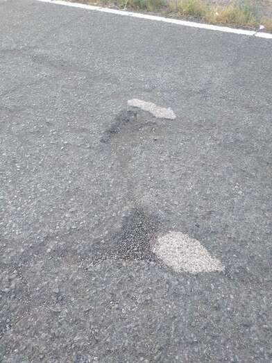 Uno de los muchos baches presentes en la carretera de Los Arenales (Foto TA)