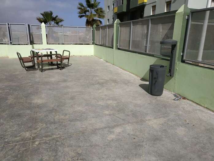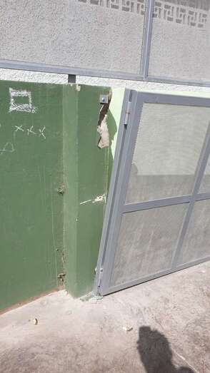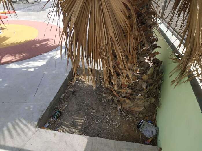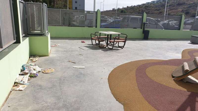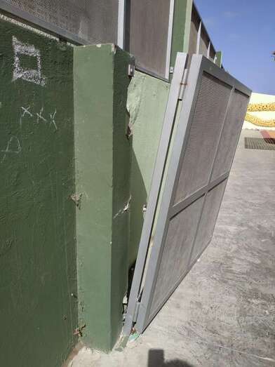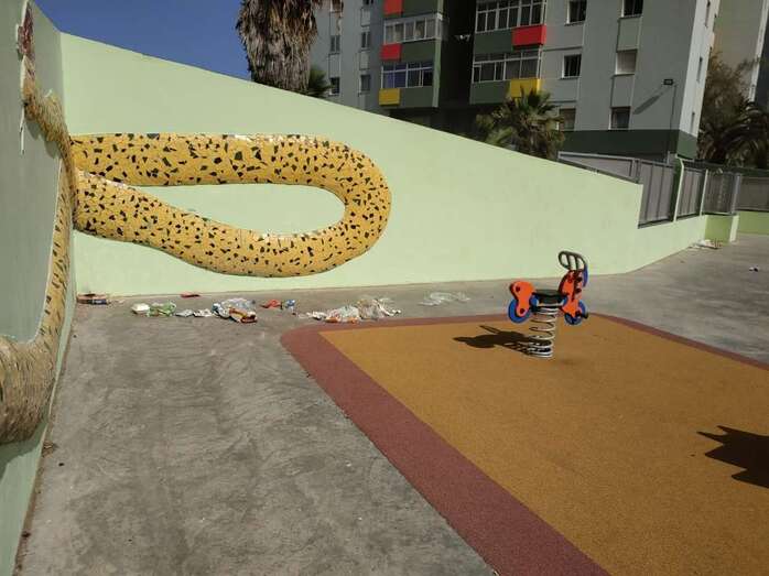 El parque infantil de la calle Manuel Alemán Álamo se rehabilitó hace tan solo unos meses, con una inversión de 27.000 euros, pero ya presenta deficiencias. Y algunas de carácter grave. A la suciedad por la falta de limpieza se une el estado de su puerta. Una pesada estructura metálica que se ha desprendido de sus anclajes y podría caer y dañar a algún niño.