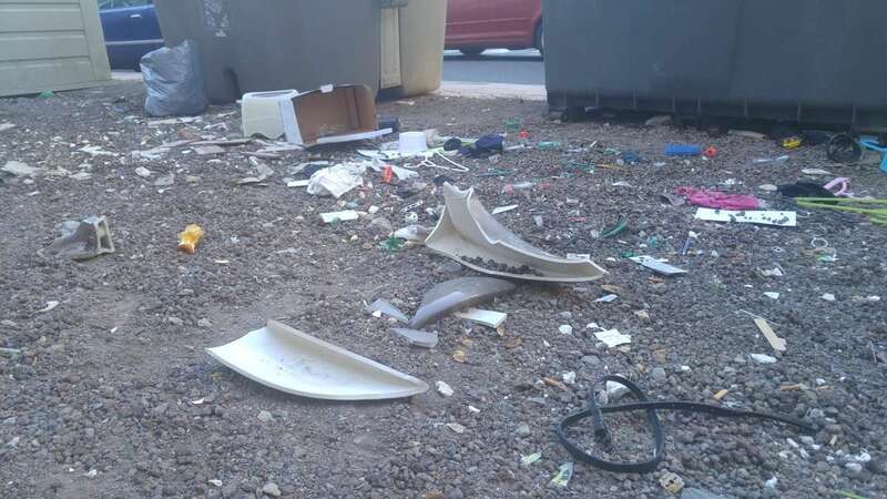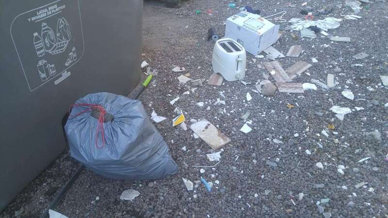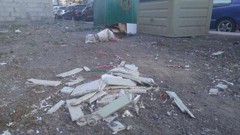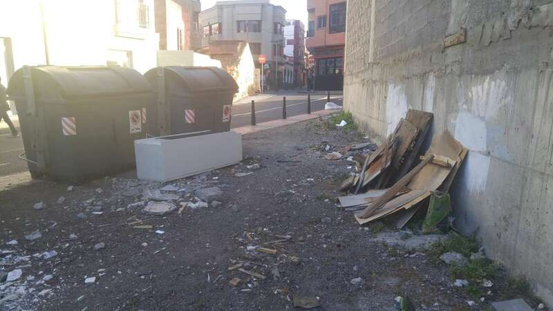 Los terrenos aledaños a la calle de Luis González Pérez, en la trasera del inacabado Palacio de la Cultura de Telde, se han convertido en un vertedero irregular en el que se acumulan escombros y materiales de construcción, maderas y hasta una nevera.