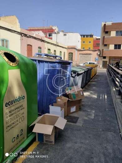 Este lunes por la mañana aparecieron cajas con varios productos alimentarios tiradas junto a los contenedores de basura que están en la parte poniente del Parque Franchy Roca, en el sector poblacional de Los Llanos de Telde.