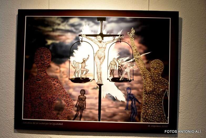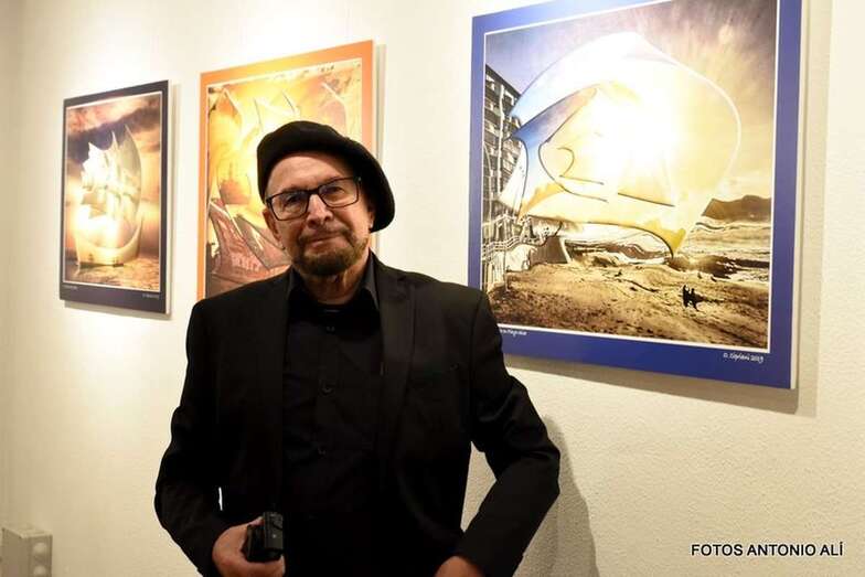 El pintor Osvaldo Cipriani, que hasta el 27 de marzo exhibe en el Teatro Municipal de Telde su exposición Juego de niños, mantuvo este miércoles un encuentro con el público.