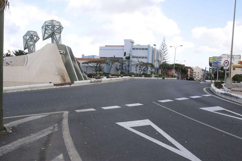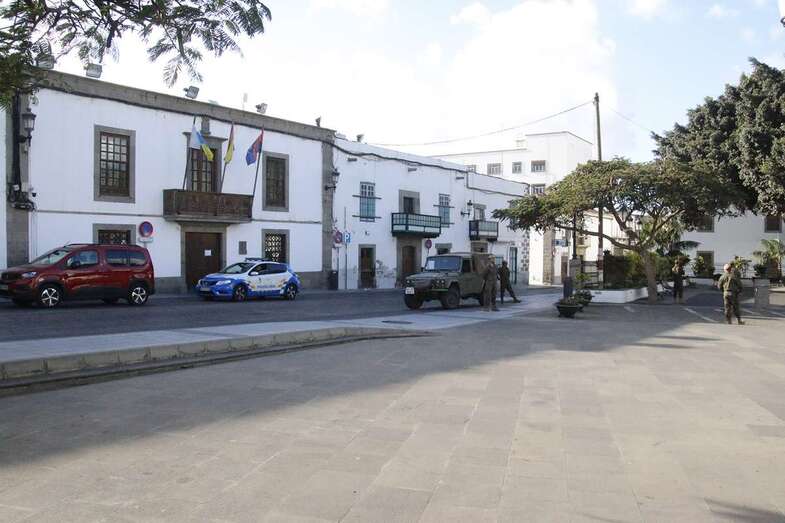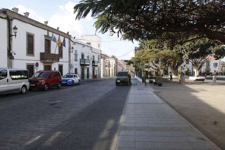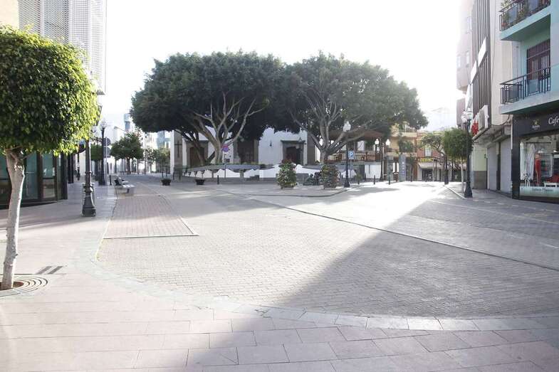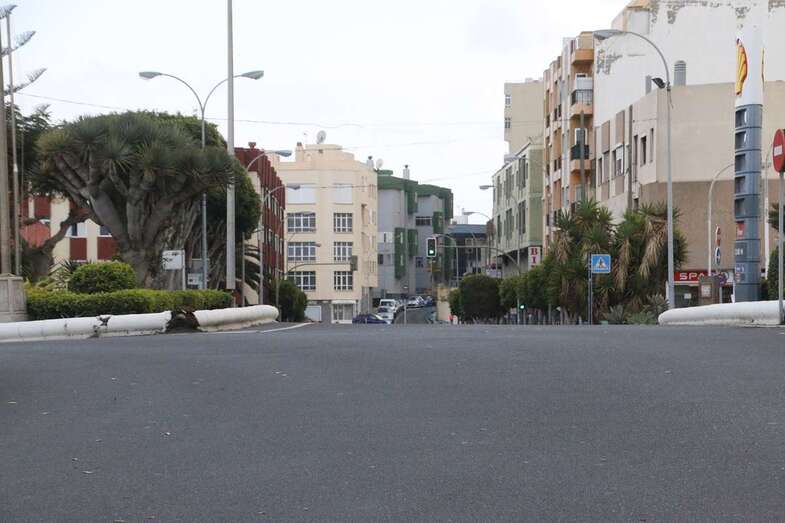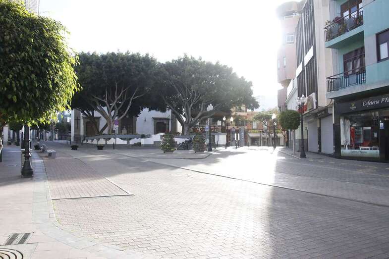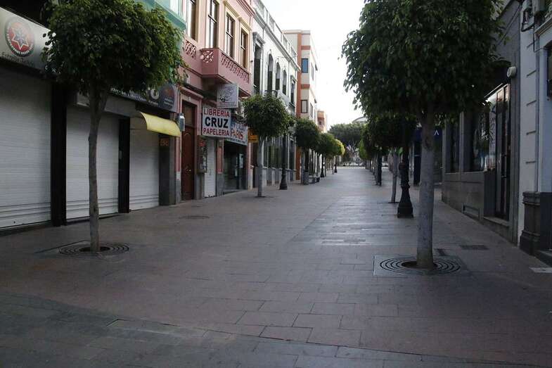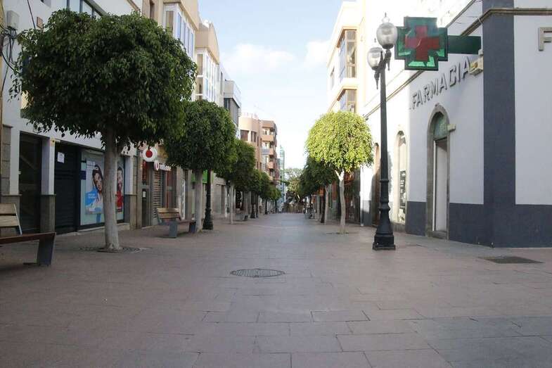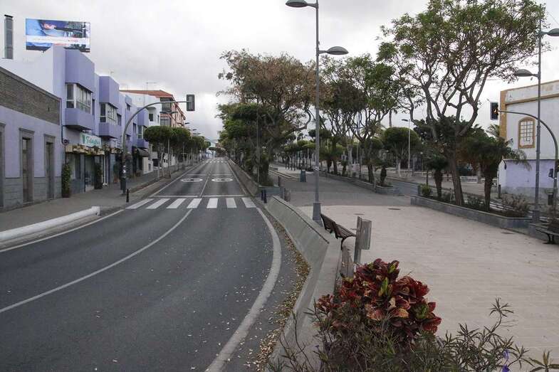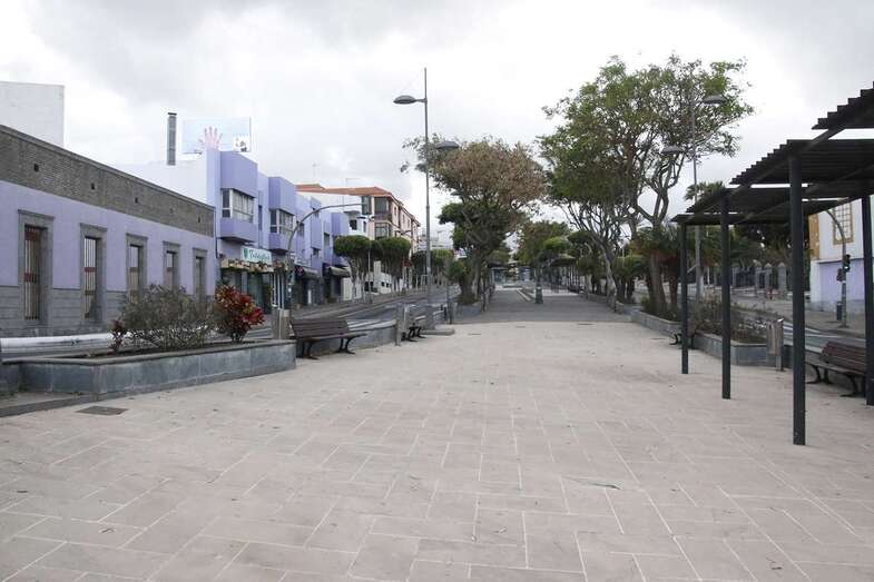 El estado de alarma para evitar la propagación del coronavirus ha vaciado de gente las calles del municipio de Telde. La ciudad permanece con las vías desiertas y los comercios cerrados, salvo los de alimentación y primera necesidad.