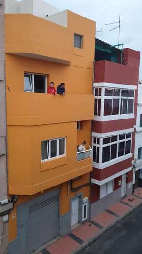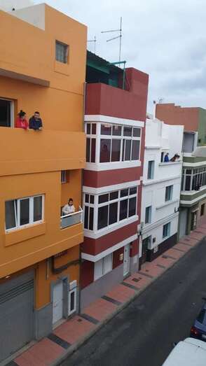 Con aplausos y la canción Color esperanza de Diego Torres sonando a través de grandes altavoces colocados en la azotea, los vecinos de la calle de Espíritu Santo (Marpequeña-Telde) agradecieron esta tarde el trabajo de los sanitarios y profesionales para garantizar los servicios básicos durante la crisis del coronavirus.
