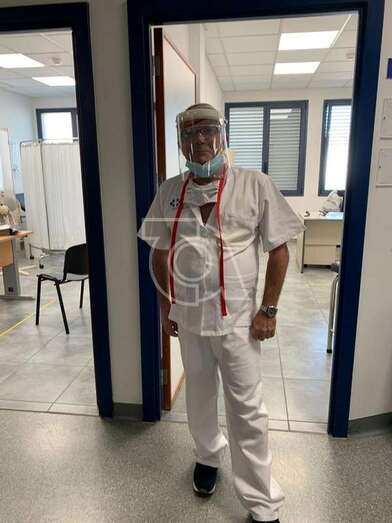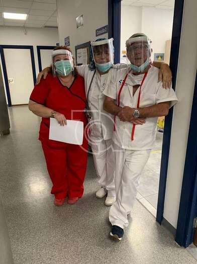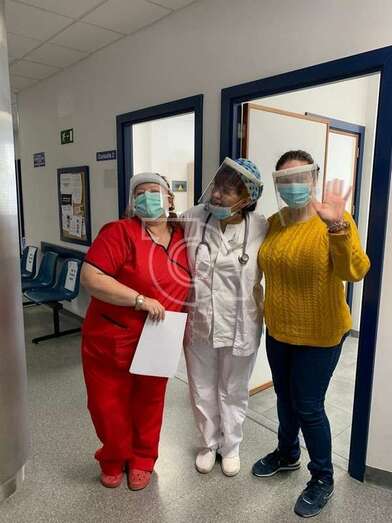 Profesionales del CS de El Calero con viseras confeccionadas por el ITC (Foto TA)