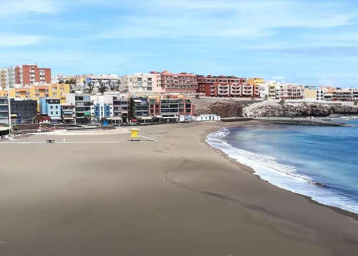 La playa teldense de Melenara, la más popular y concurrida de toda la costa este de Gran Canaria, destila estos días de confinamiento por la crisis sanitaria una estampa desértica, silenciosa y vacía, inusual en el periodo de vacaciones de Semana Santa.