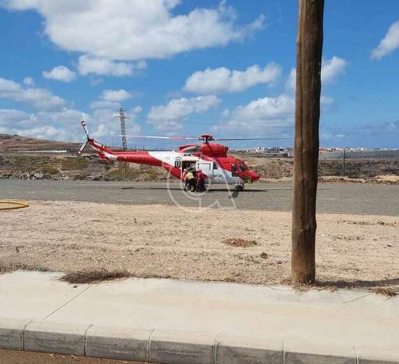 Helicópteros del GES Gobierno de Canarias han tomado este sábado un solar usado como parquin en la zona industrial de El Goro para sus operaciones de traslado a Fuerteventura y Lanzarote del material sanitario que llegó esta mañana a Gran Canaria en un vuelo comercial directo desde China. Bomberos y Policía Local de Telde colaboran en el dispositivo.