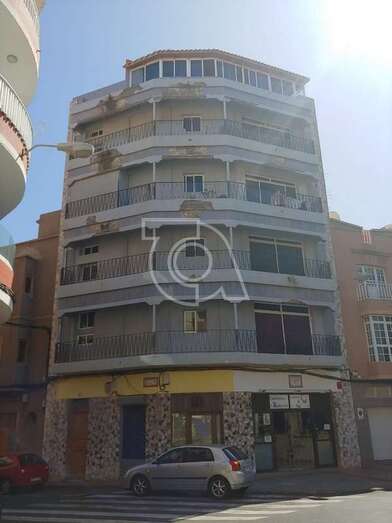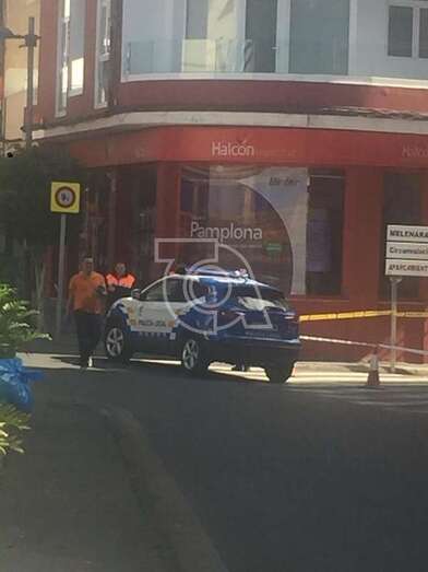La caída de cascotes del edificio plurifamiliar de seis plantas de altura que hace esquina entre las calles de Parque Franchy Roca y Oriente, en Los Llanos, ha obligado a acordonar con cintas su entorno para evitar riesgos a la población que transite por la zona.