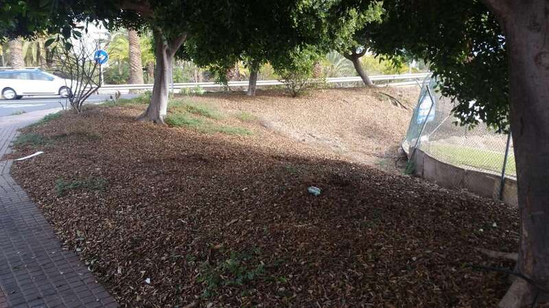 Los alrededores de la calle de Acuarelista Elías Marrero, en la trasera de la antigua estación de guaguas de Telde y junto al circuito de automodelismo, se han convertido en un espacio sucio, en el que la limpieza y el cuidad de la vegetación brillan por su ausencia.