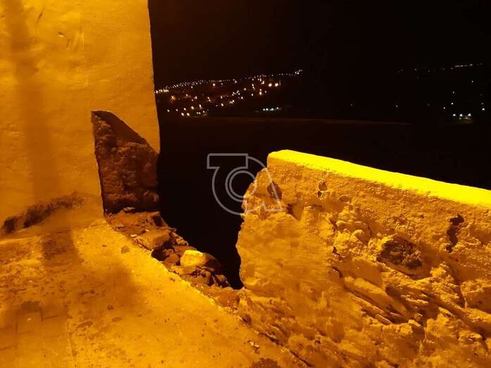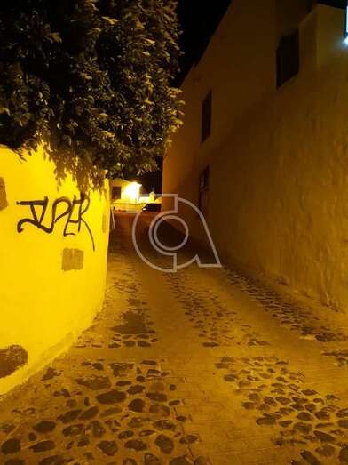 El impacto de un vehículo desplomó un trozo de la tapia que bordea por el norte la calle de Santa María. Los vecinos de la zona alertan del peligro que puede representar este hueco en el núcleo histórico de San Francisco.