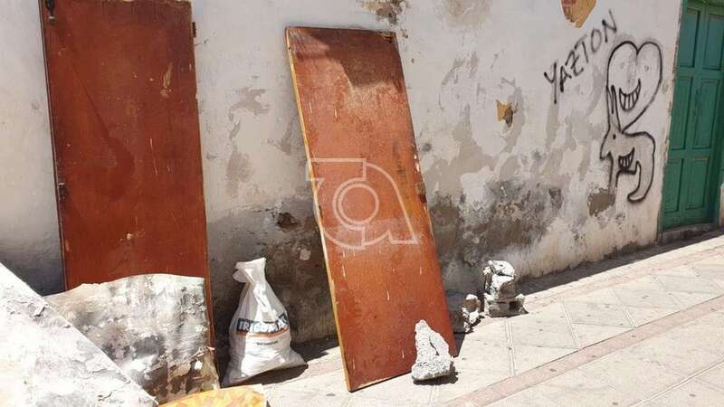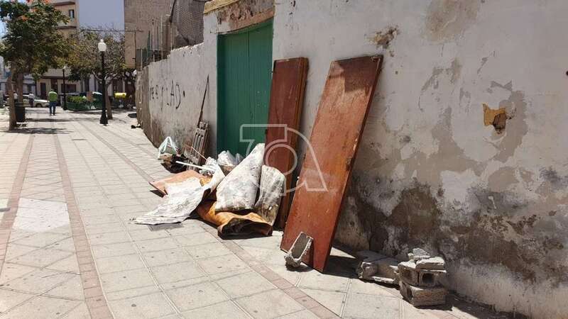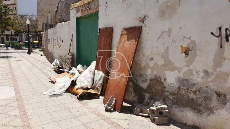 La calle-plazoleta que inmortaliza en Telde al botánico sueco Enrique Sventenius, creador del Jardín Canario, en el mismo corazón de la zona comercial de Los Llanos, brinda a las personas que transitan por ella una imagen nada edificante. Bolsas de escombros y restos de una obra se apilan en esta vía desde hace unos días.