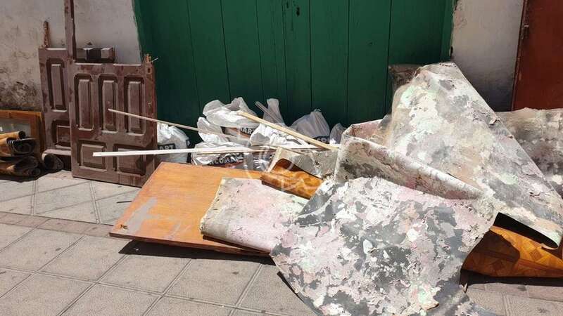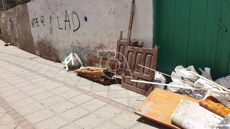 Bolsas con escombros y restos de obras de construcción en la calle que recuerda al botánico Enrique Sventenius (Foto TA)