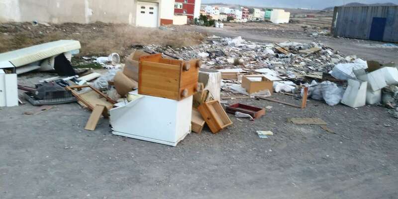 Un solar de la calle de Sagunto en Las Huesas, al que suele acudir niños a jugar, es un foco de infección por la acumulación de escombros, enseres domésticos, residuos de todo tipo, meadas de perros, etcétera. Los vecinos reclaman una limpieza urgente del lugar.