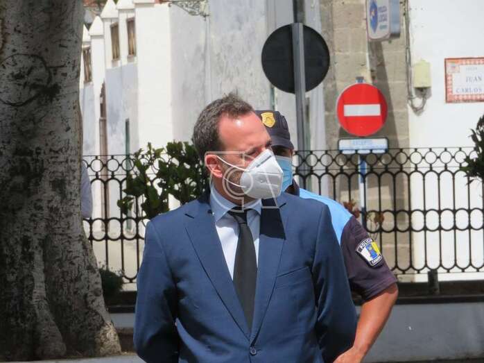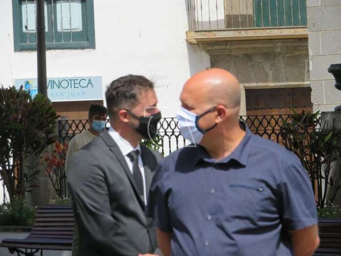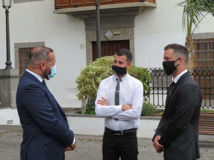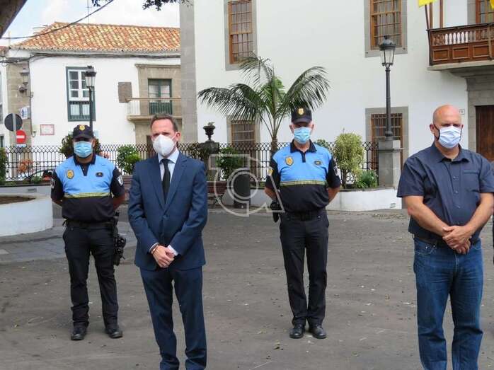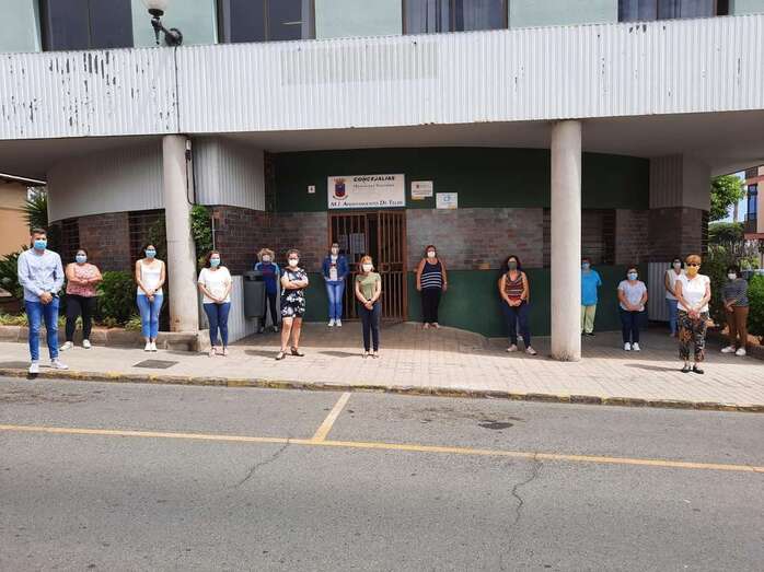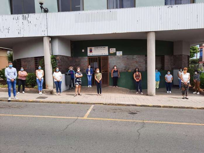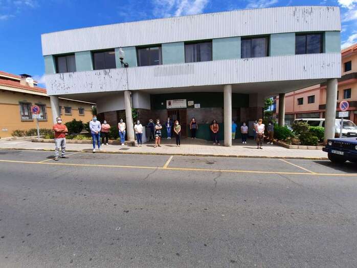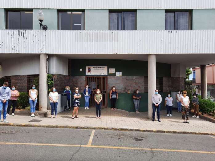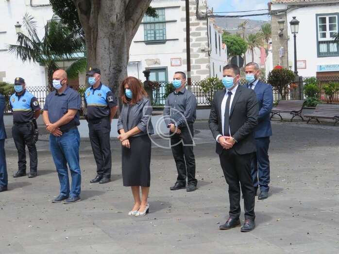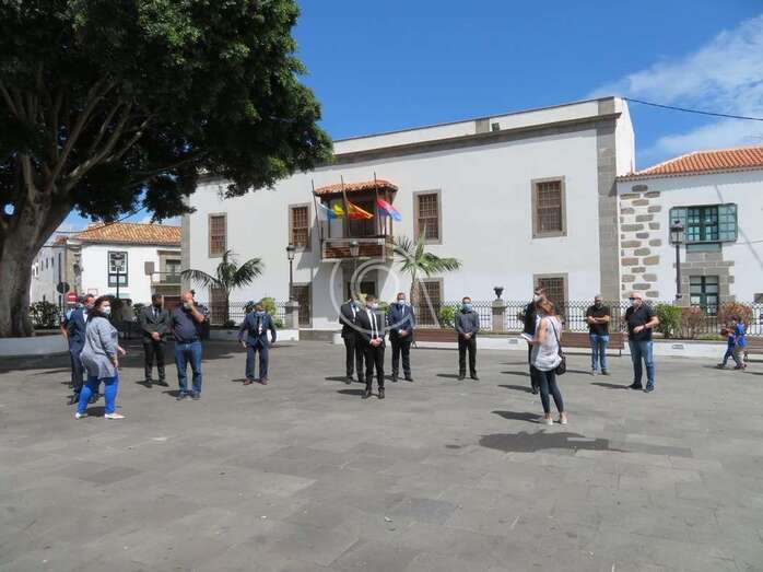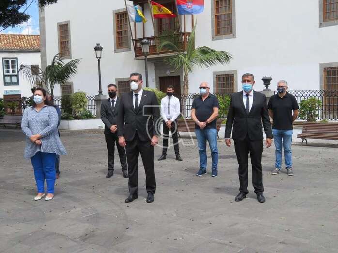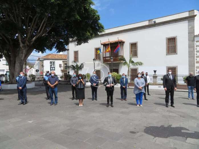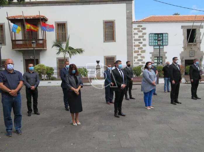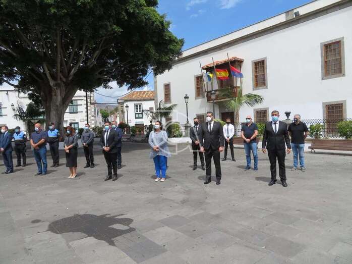 Miembros de la Corporación, funcionarios y ciudadanos de Telde mantuvieron este mediodía un minuto de silencio en la Plaza de San Juan en el último día del luto oficia de 10 jornadas para recordar de nuevo a las personas fallecidas durante la pandemia global.