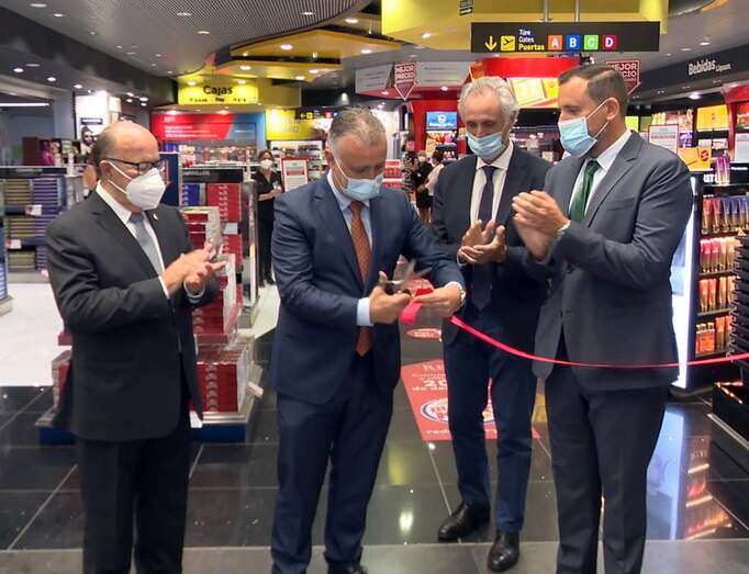 El presidente de Canarias, Ángel Víctor Torres, participó este martes, 1 de julio, en el Aropuerto de Gran Canaria en el acto oficial de reapertura de las tiendas Canariensis, empresa filial de Dufry.