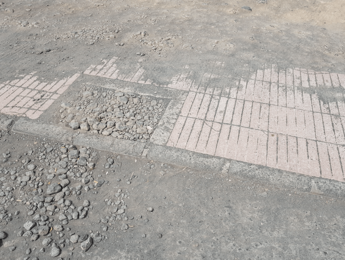 Los conductores tienen que atravesar el bordillo de una acera para acceder al solar (Foto TA)