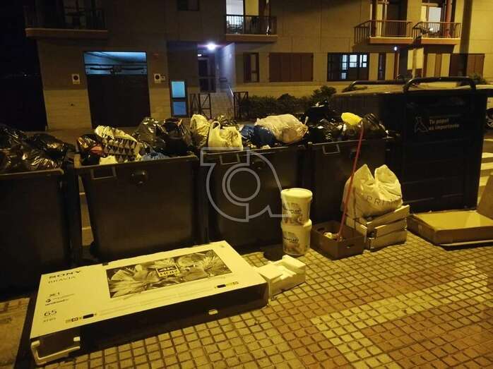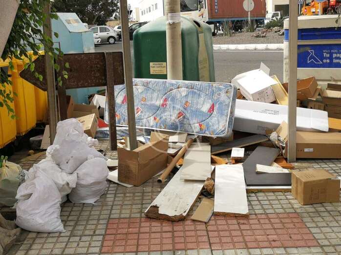 El servicio de Limpieza Viaria y Recogida de Residuos deja mucho que desear en Salinetas, donde la basura se acumula en el entorno de los contenedores que están situados en la rambla de Américo Vespucio y nadie la retira.