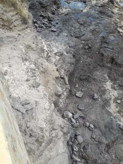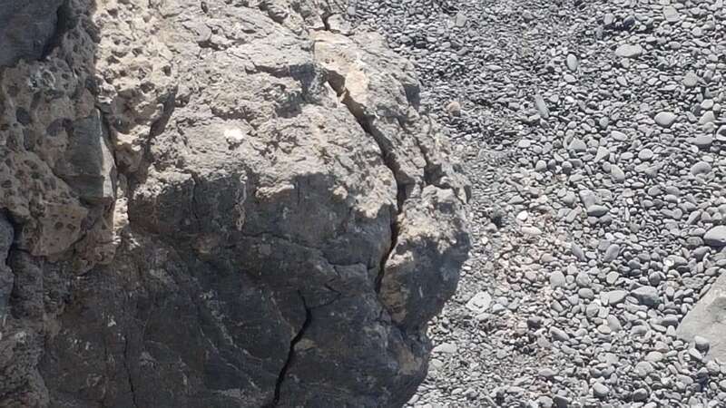 Preocupación entre los vecinos de Clavellinas por el estado de un saliente rocoso que se ha agrietado recientemente y que amenaza con caer sobre una pequeña cala al norte de Salinetas, pasado el puesto de socorrismo.