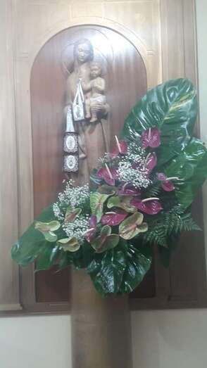 La Parroquia del Carmen del barrio teldense de Marpequeña ofrece una preciosa ornamentación floral realizada por el decorador Ignacio González para celebrar el día grande de la patrona con una misa que tendrá lugar a las 20.00 horas.