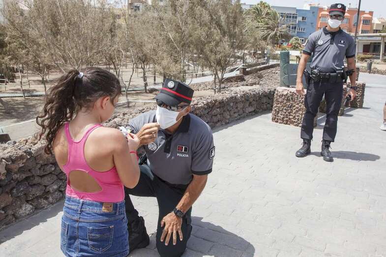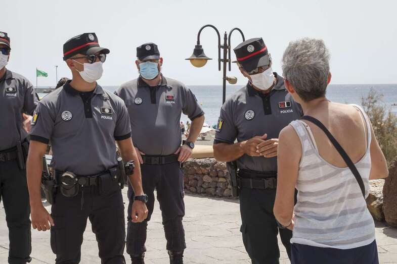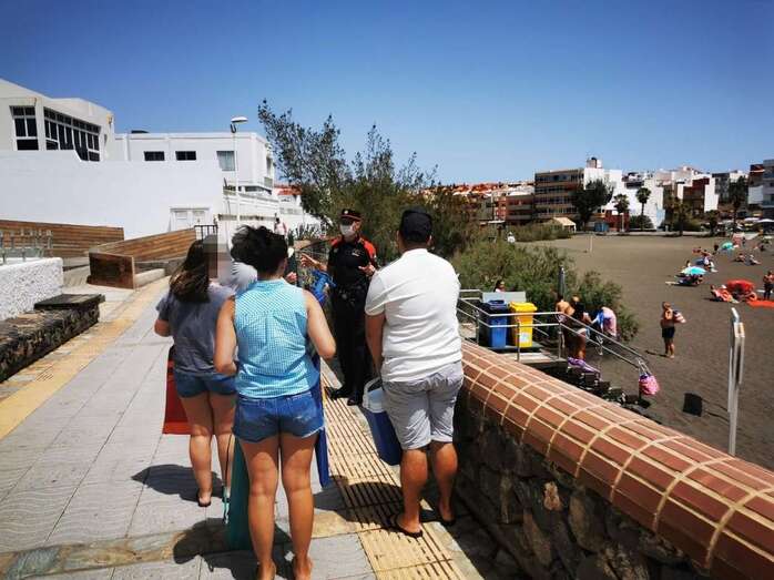 Efectivos de la Policía Canaria y Policía Local estuvieron este domingo en distintos puntos de la costa de Telde fomentando entre la población local que el uso de las mascarillas sea el adecuado para evitar posibles contagios. Miembros de estos dos cuerpos de seguridad se dejaron ver en los paseos marítimos de Salinetas, Melenara y la Garita y en controles en vías públicas.