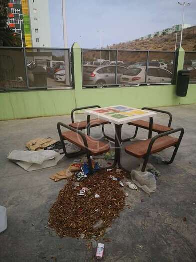 Estampa lamentable la que ofrece el parque infantil de la 1ª Fase del Valle de Jinámar. Varios montones de basura y desechos se acumulan en el recinto, esperando a que los servicios de limpieza los retiren.