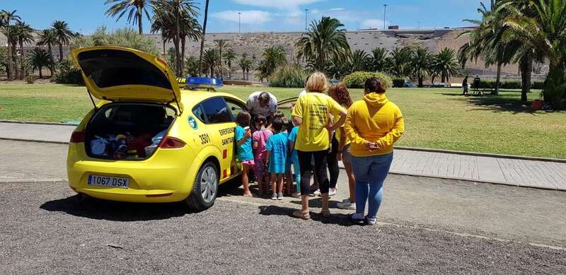 La Unidad de Salvamento y Emergencias Salva-Emer Canarias ofreció este miércoles una charla sobre medidas preventivas contra el Covid-1. La actividad dirigida a los más jóvenes de Jinámar tuvo lugar en el parque de La Condesa.