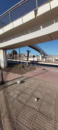Caída de cascotes en el vial costero del paso elevado próximo a la rotonda de Hoya del Pozo