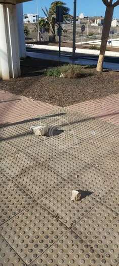 Trozos de la pasarela sobre la acera/TA. Trozos de la pasarela sobre la acera/TA.