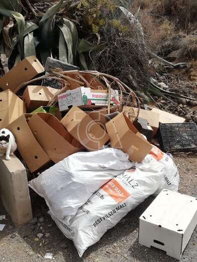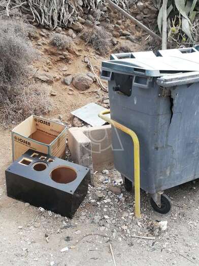 Los vecinos que habitan en la calle de Minerva, en el barrio teldense de Caserones Altos, reclaman la reposición de los contenedores rotos y sucios del servicio público de recogida de basura. Afirman que llevan años sin ser sustituidos.
