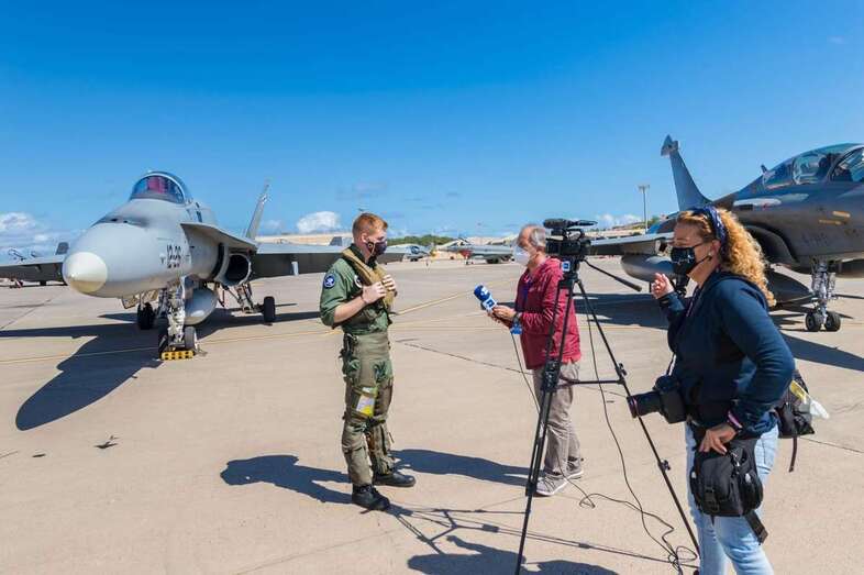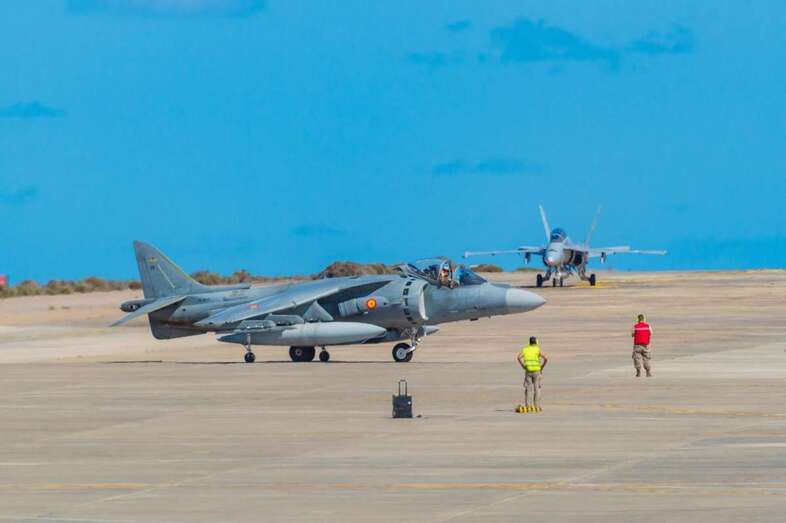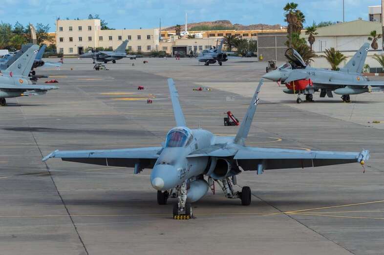 TELDEACTUALIDAD ofrece reportaje gráfico del colaborador Antonio Rico de los ejercicios militares en el aire Ocean Sky 2020 que comenzaron el pasado viernes en el cielo de Canarias con la participación de cazas del Ejército del Aire en la zona denominada Delta 79, al sur de las Islas.