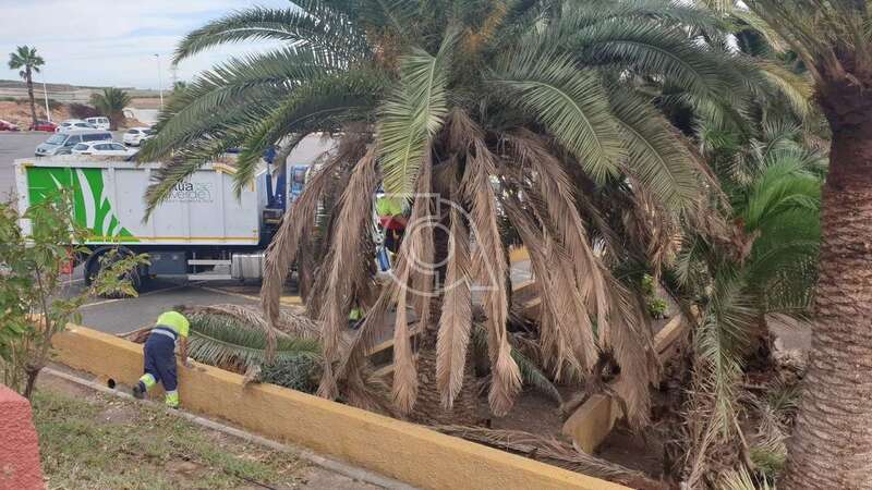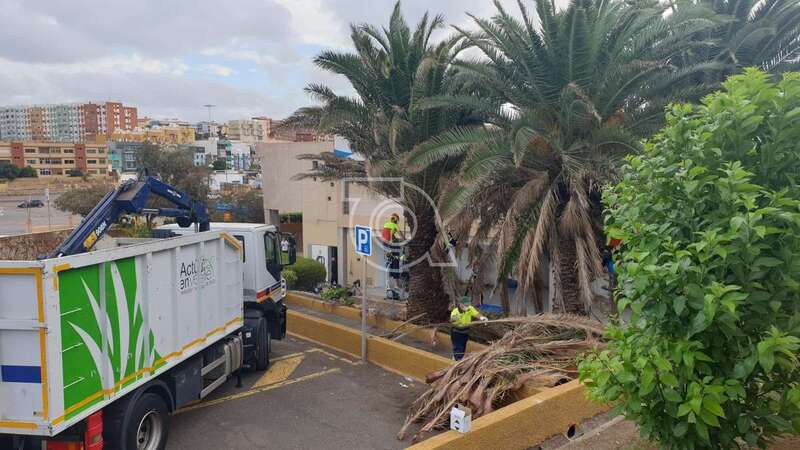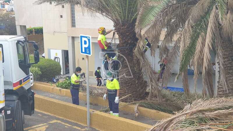 Operarios de Parques y Jardines han procedido este lunes a podar las palmeras situadas en el entorno del restaurante Bistro Escuela Melenara, una intervención reclamada días atrás por vecinos de la zona a través de este periódico digital.