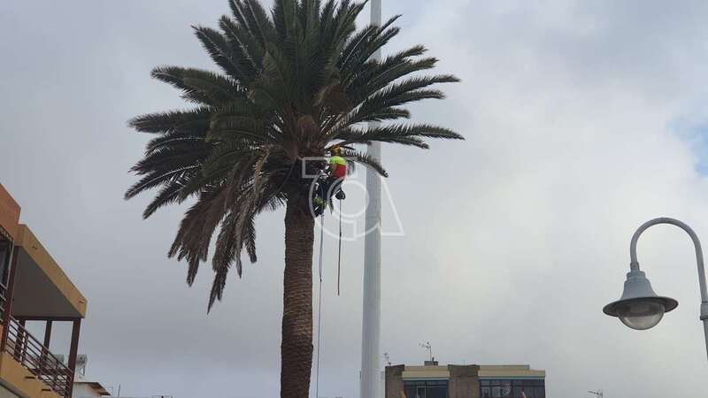 Operarios adscritos a la Concejalía de Parques y Jardines, que tutela el edil Álvaro Monzón (Más por Telde), ejecutan estos días en el sector costero de Clavellinas-Salinetas labores de poda y adecentamiento de las palmeras ubicados en espacios públicos.