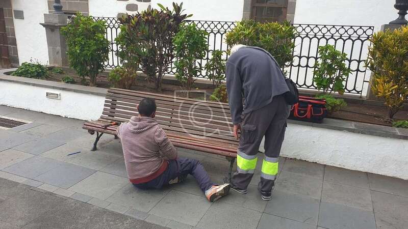 Operarios del área de Servicios Municipales que dirige el edil Eloy Santana (NC) procedieron este jueves por la mañana a arreglar los bancos de madera en mal estado de la plaza de San Juan, en el casco histórico de Telde, atendiendo a la denuncia vecinal publicada por este periódico digital.