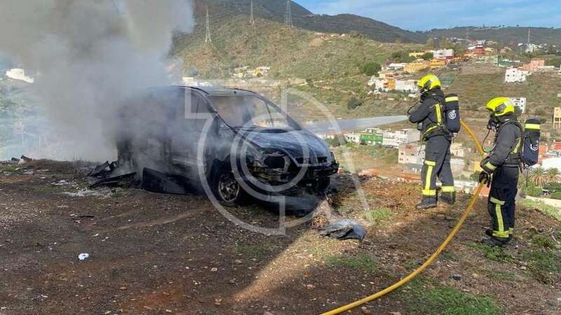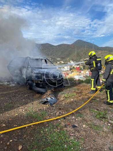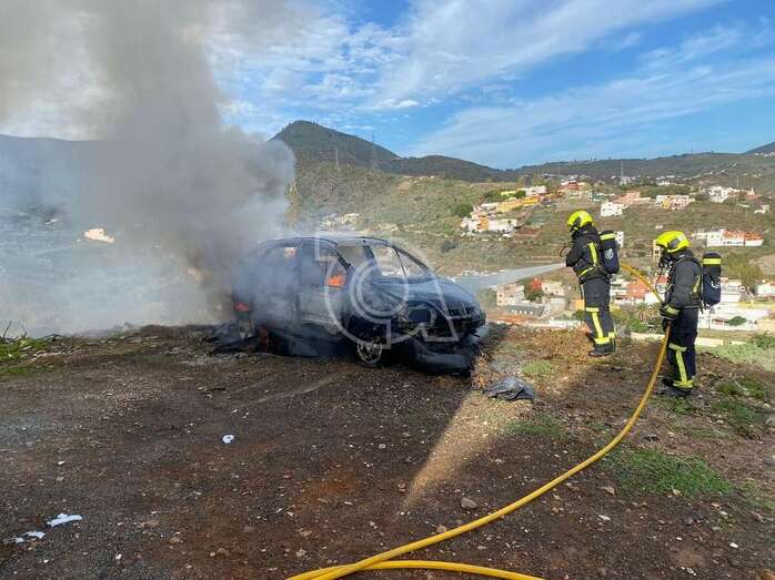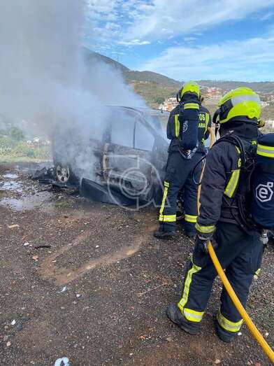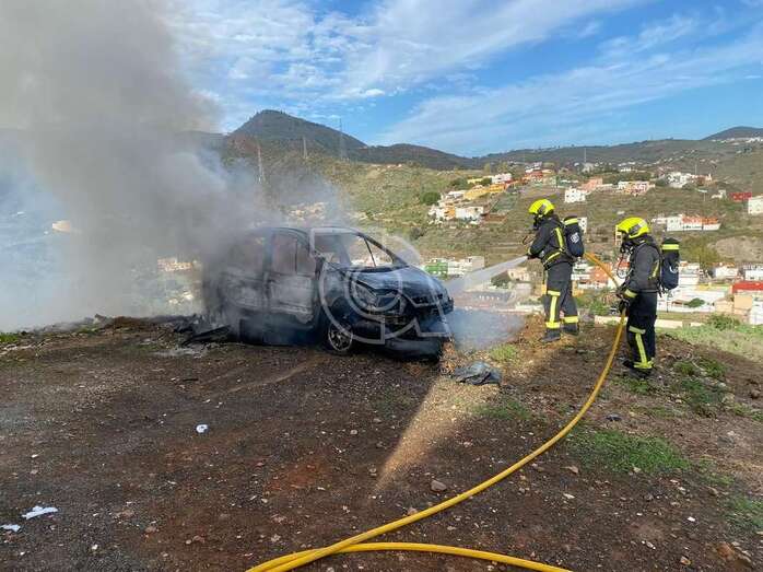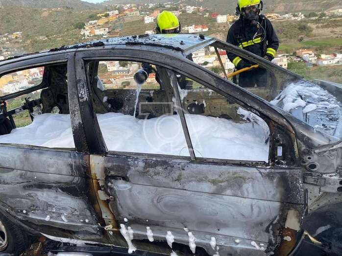Bomberos del parque zonal de Telde emplearon 3.500 litros de agua para sofocar el incendio de un coche en el sector jinamero de Lomo Blanco. El siniestro se produjo a primera hora de la mañana, sobre las 9.30 horas, y las llamas dejaron totalmente calcinado el turismo.