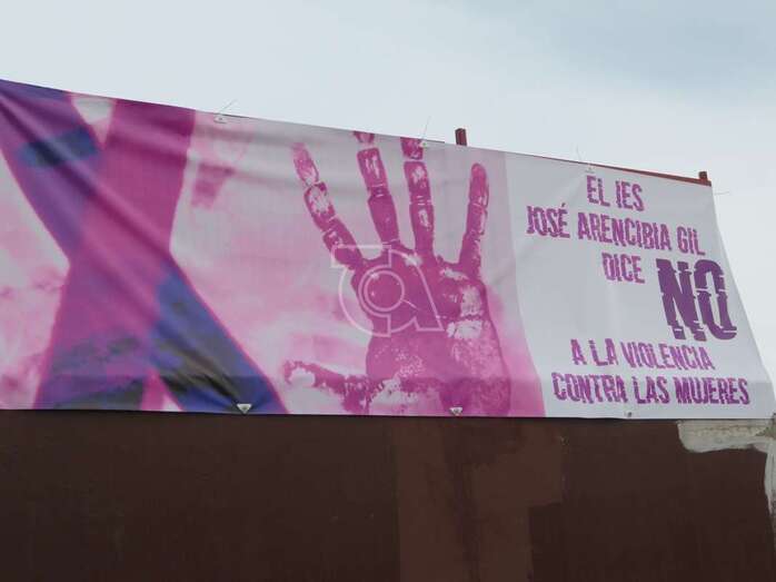 Pancarta desplegada por el IES José Arencibia Gil/TA. El IES José Arencibia Gil se ha sumado al Ccon el despliegue de una gran pancarta en la esquina de sus instalaciones ubicada entre las calles de José Arencibia Gil y Alcalde Manuel Álvarez Peña.