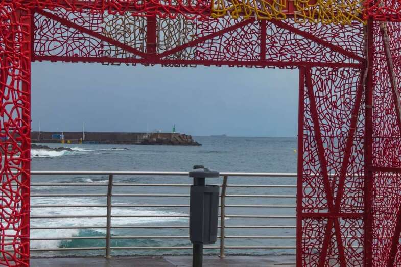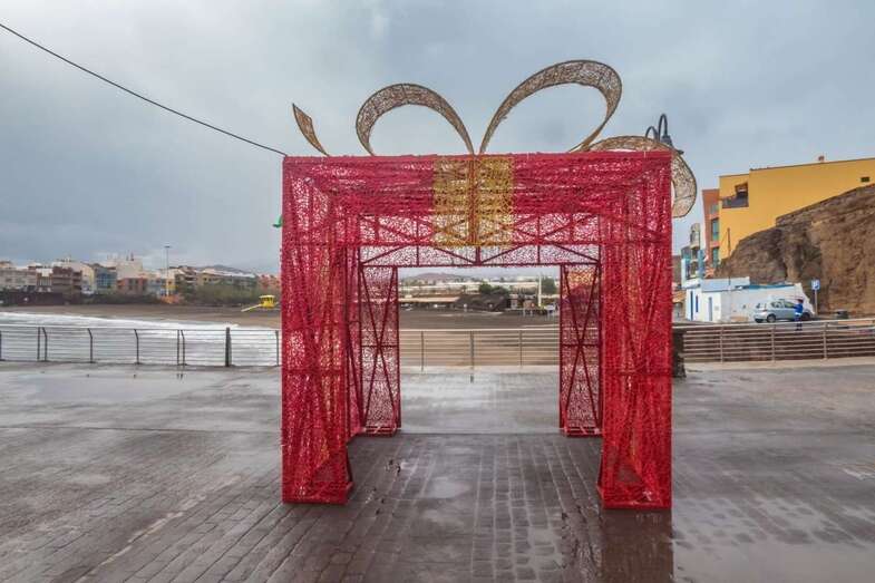 El antiguo espigón del muelle de Melenara exhibirá durante las próximas fiestas de Navidad un elemento lumínico decorativo que simboliza un paquete de regalo. Ha sido montado por la Concejalía de Alumbrado Público en el marco del nuevo encendido navideño que se pone en marcha esta noche.