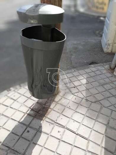 Papelera quemada/TA. El vandalismo la ha tomado en los últimos días con las papeleras de la plaza pública de La Herradura, ubicada entre las calles de Cardenal Cisnero y Gloria, según denuncian vecinos de la zona.