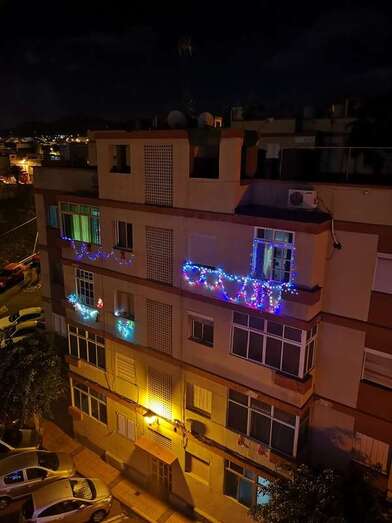 Un grupo de vecinos de San José de Las Longueras se ha organizado para decorar los balcones con luces navideñas. Una iniciativa a la que se han sumado muchos residentes. Este lunes se hizo un encendido simbólico en memoria de todas las víctimas por la covid-19. "El barrio necesitaba luz y esperanza", comenta Yaiza Suárez.