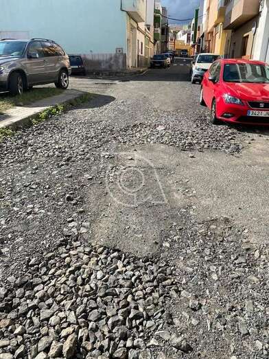 El estado del firme de la calle que inmortaliza en Telde al dramaturgo español Ramón del Valle-Inclán, uno de los autores clave de la literatura española del siglo XX, está pidiendo a gritos su repavimentación.