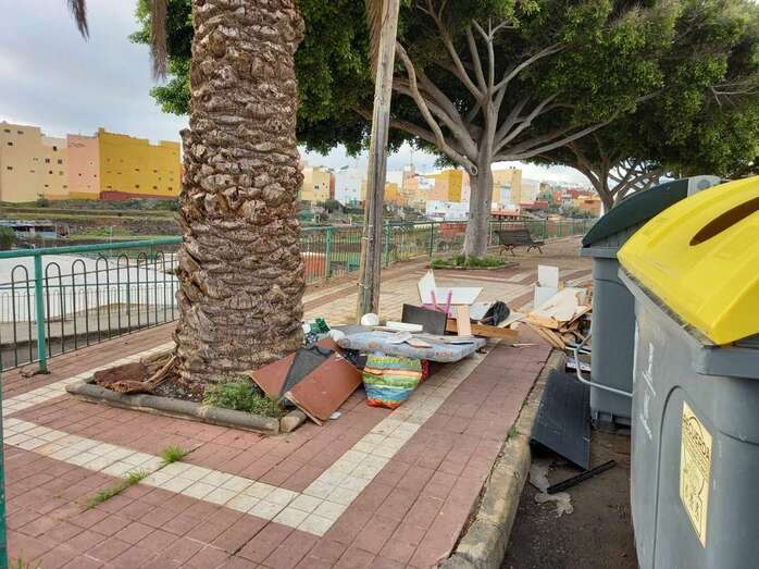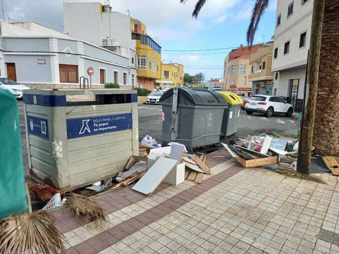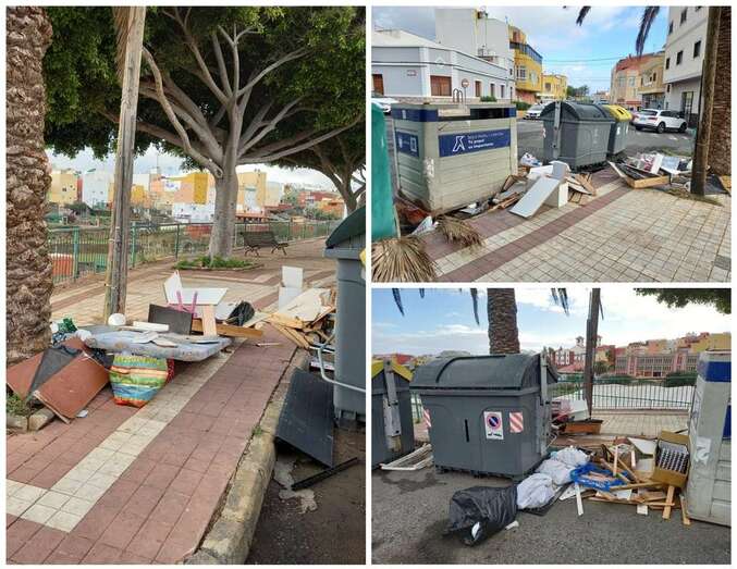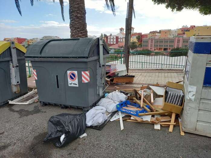 El área de contenedores de recogida de basura de la calle que inmortaliza al navegante portugués Fernando de Magallanes, en El Calero Alto, se está convirtiendo en un “nuevo punto limpio” por el depósito de desechos de enseres domésticos y de otros residuos.