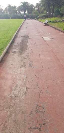 Las deficiencias del parque urbano de San Juan por la falta de mantenimiento sigue desatando las críticas de los usuarios. En esta ocasión las quejas llegan por el mal estado del pavimento, lo que ha llevado a la Concejalía a colocar conos para señalizar del peligro por el hundimiento del suelo y la irrupción de socavones.