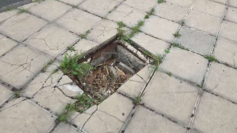 Arqueta sin tapa/TA. En la acera de entrada al parque de La Condesa, en el Valle de Jinámar, hay varias arquetas sin tapas que representan un manifiesto peligro de caída en una zona por la que pasan a diario cientos de personas.